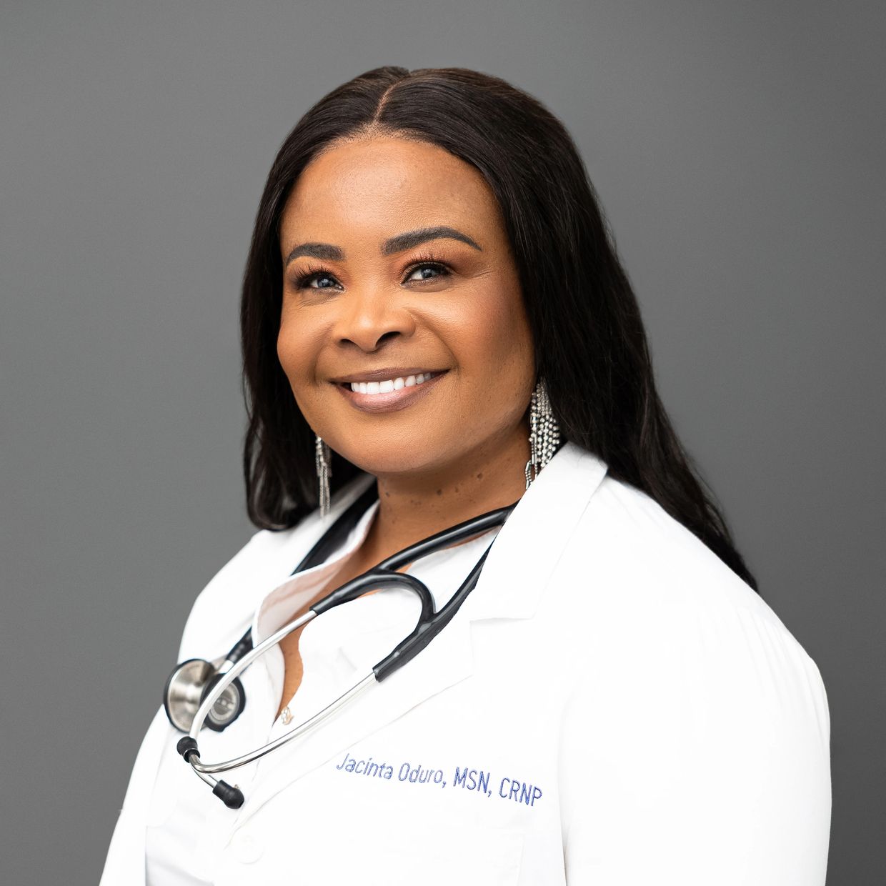 Jacinta Oduro is a dedicated Nurse Practitioner committed to delivering personalized, patient-centered healthcare to the Frederick, Maryland community. With a passion for building lasting relationships with her patients, Jacinta takes the time to listen, understand, and create individualized care plans that address both immediate health concerns and long-term wellness goals.